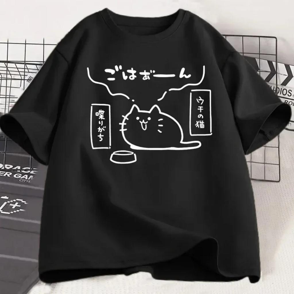 Japanese Style Cat Printed T Shirts for Women Short Sleeve Tshirt Causal Trendy Loose T-shirt Women Clothes