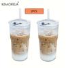 KEMORELA 1/2PCS Ribbed Glass Tumblers with Lids and Straw 600ML Large Capacity Coffee Cup for Iced Americano and Juice Coke Beer