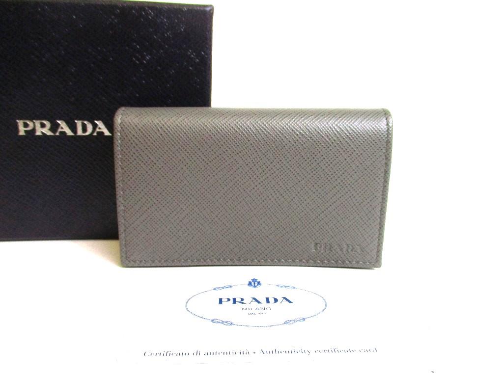 Authentic PRADA Gray Saffiano Leather Card Case Card Holder #b140 Open Box