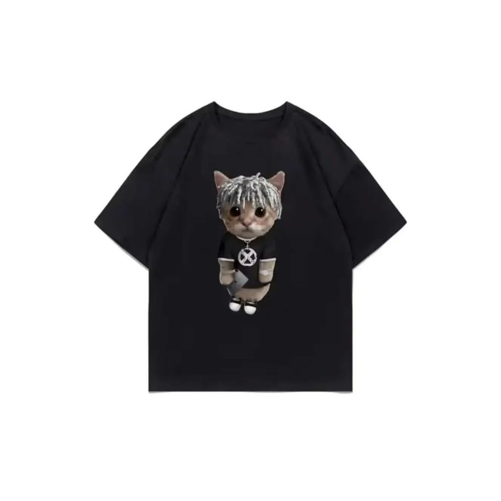 Piercing Rebellious Cat Kitty Hip Hop Trendy T-shirt for Women and Men Hip Hop Loose T-shirt Fashion Cotton Street T-shirt 90077