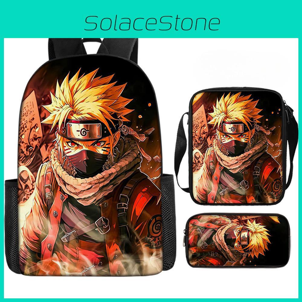 This Naruto-themed school backpack set features a lightweight, durable Oxford cloth construction with breathable features for comfortable wear. The set includes a double-shoulder backpack, a shoulder bag, and a pencil case, measuring approximately 16 inches tall and 12 inches wide. Its vibrant character print adds playful charm, ideal for elementary school students during daily school activities. Easy to maintain, wipe clean with a damp cloth for lasting use.