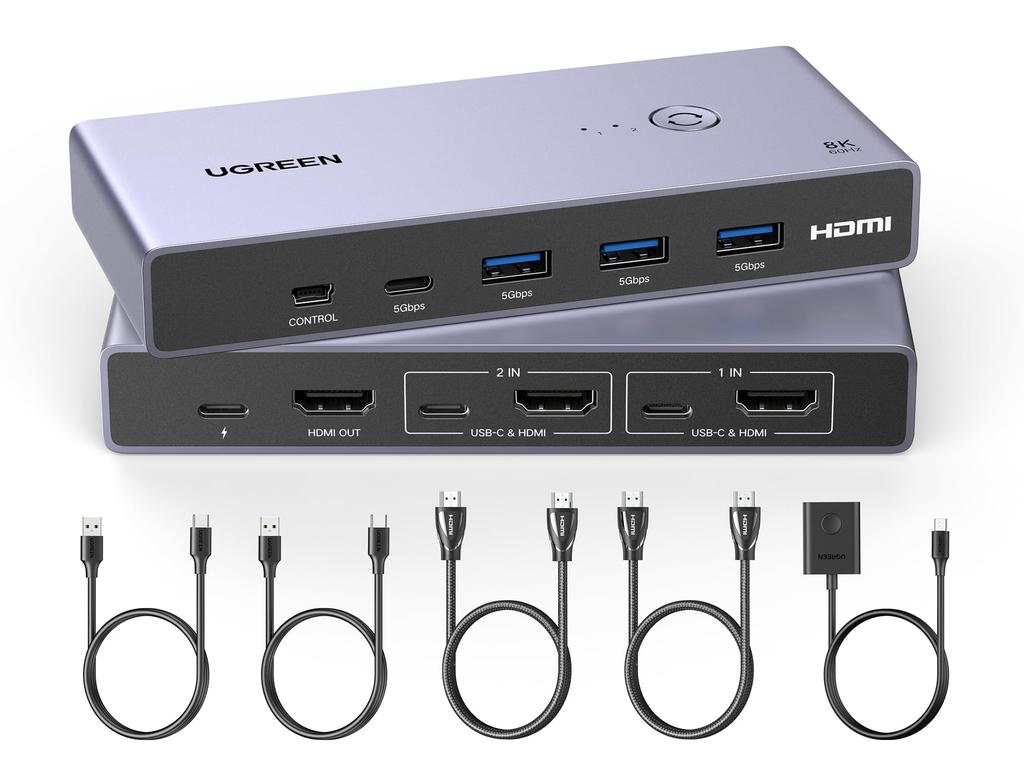 2-Input 1-Output USB 3.0 HDMI KVM Switch: This HDMI KVM switch allows two computers to share one HDMI display and one USB-C device, as well as a mouse, keyboard, printer, and other USB devices. It eliminates the need for separate displays for each PC, saving space and providing a spacious user experience.