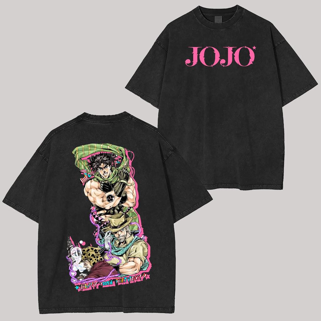 Harajuku Anime JoJo's Bizarre Adventure T Shirt Gothic Washed Oversized T-shirt Summer Pure Cotton Tees Tops Men Unisex Clothing