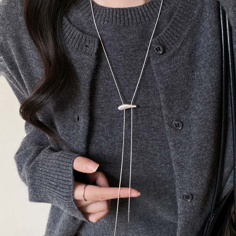 Minimalist Silver Color Matte Snake Bone Chain Necklace for Women Fashion Adjustable Long Sweater Chain Luxury Neck Jewelry