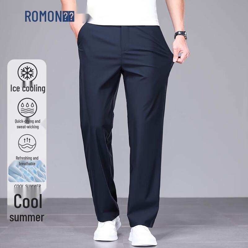 ROMON Men's Milk Silk Ice Feel High-Elastic Casual Business Trousers
