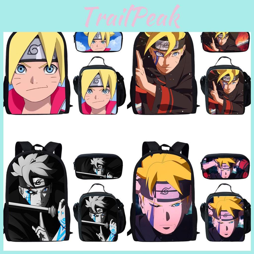 Naruto Student Backpack Lunch Pack And Pencil Organizer With Waterresistant Nylon For Kids