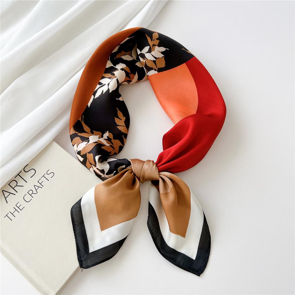 Floral Print Silk Scarf Women Fashion 70*70cm Square Scarves Hijab Female Neckerchief Soft Neck Ties