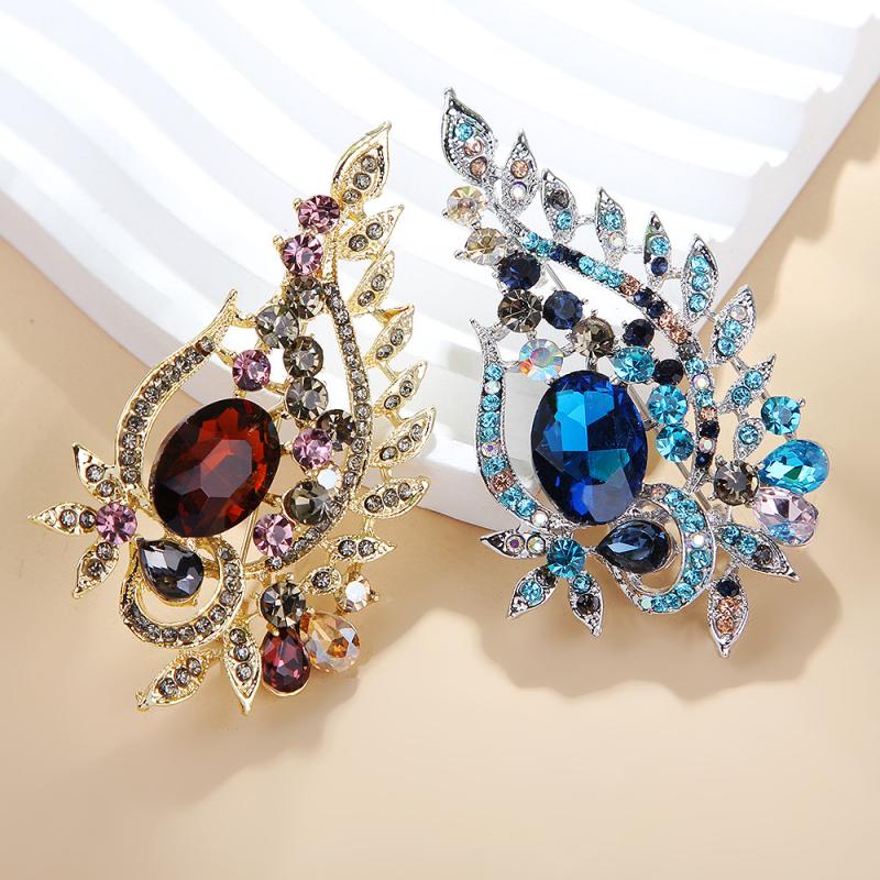 Fashion Rhinestone Crystal Plants Leaf Brooches For Women Clothing Coat Jewelry Accessries Gifts