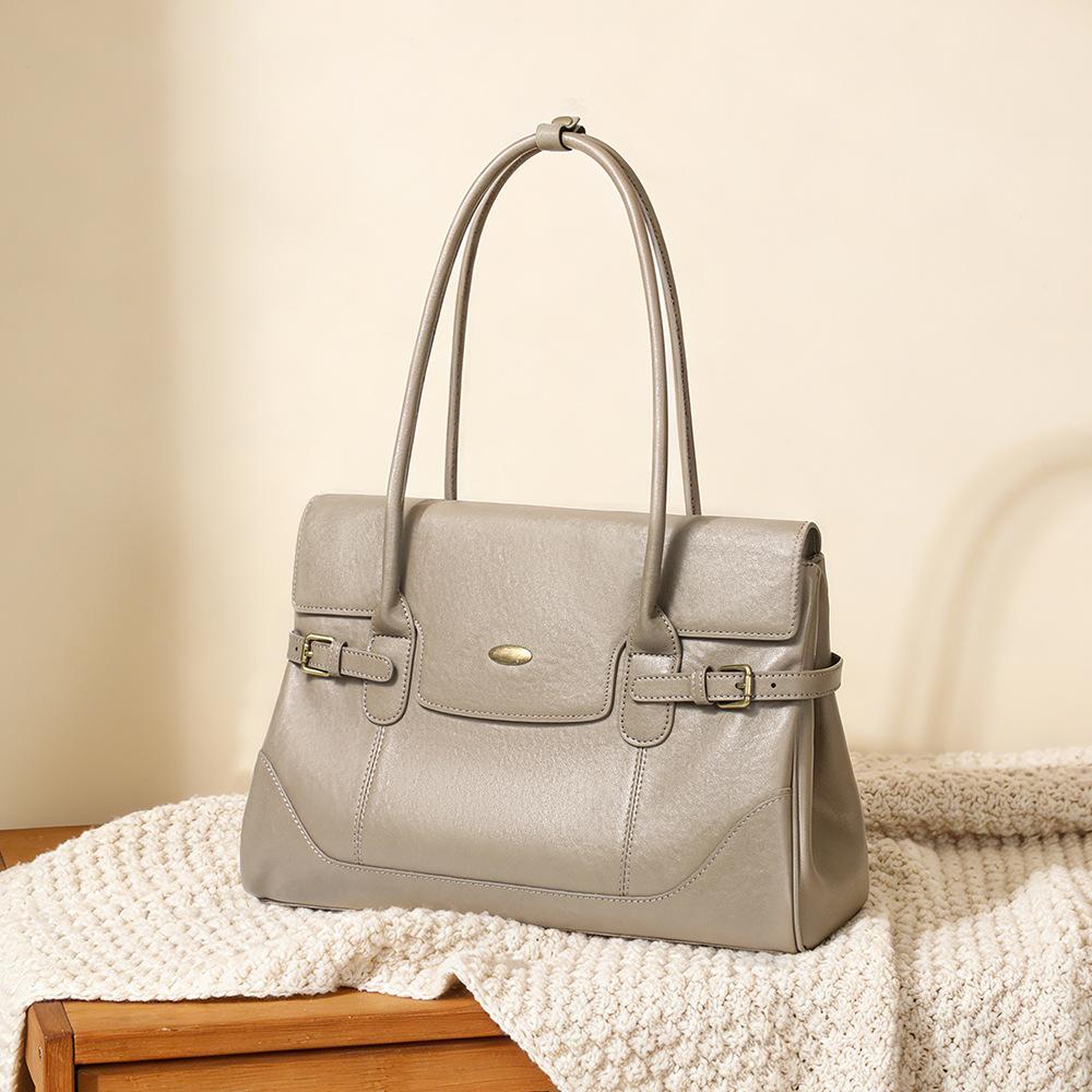 Simple First Layer Cowhide Leather Large Capacity 2026 Commuter Retro Handbag Fashionable Shoulder Underarm Tote Bag