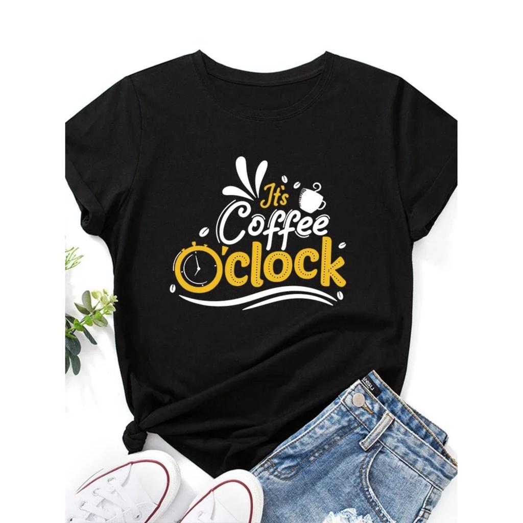 It's Coffee Clock Print Women T Shirt Short Sleeve O Neck Loose Women Tshirt Ladies Tee Shirt Tops Clothes Camisetas Mujer