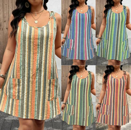 2026 Summer Fashion: Striped Sleeveless Dress with Button Pockets, Women's Casual European & American Style.