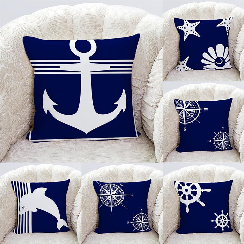 Starfish Shell Compass Anchor Nautical Series Printed Pillowcase Living Room Sofa Cushion Cover Bedroom Room Home Decoration