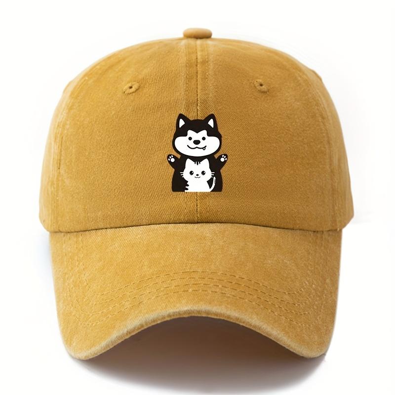 Unisex Casual Baseball Cap with Cute Cartoon Dog and Cat Prints Suitable for Camping and Leisure Activities