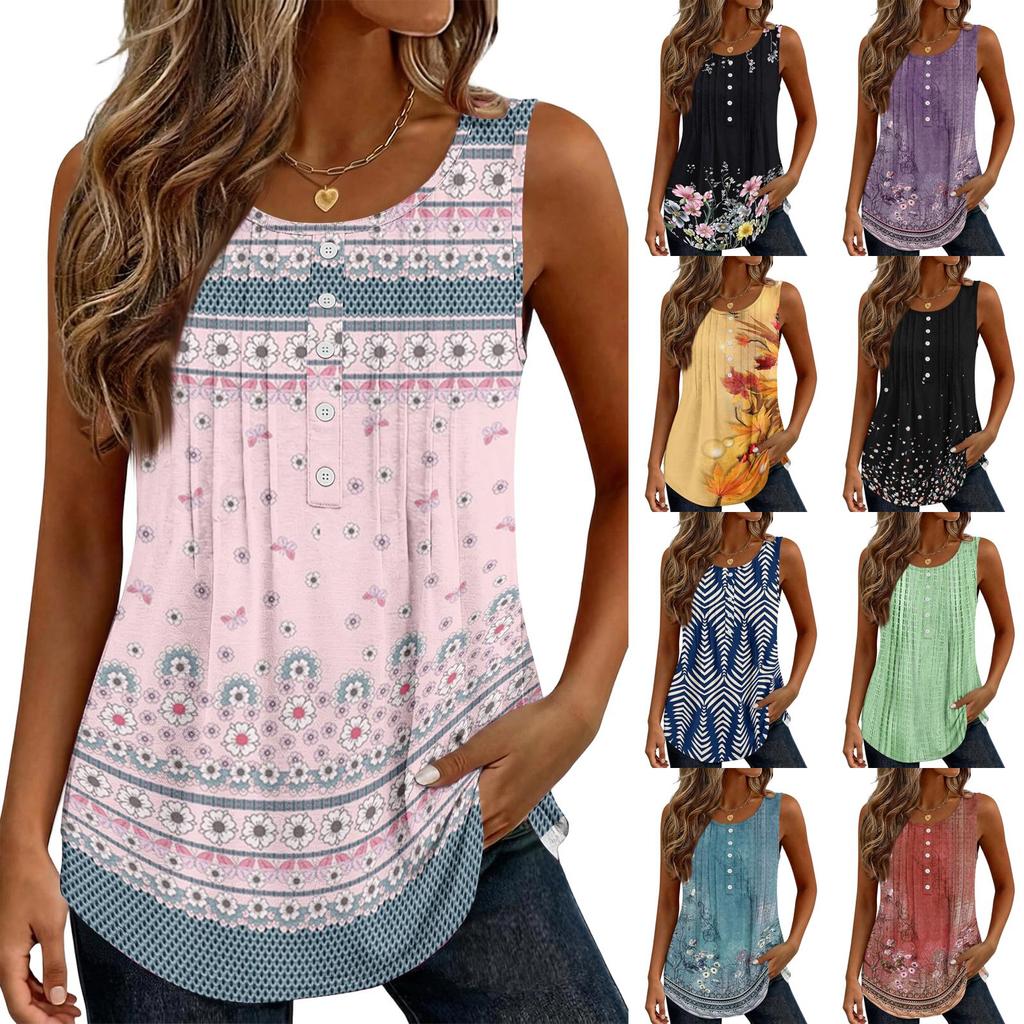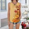 Women's Fashion Casual Retro Floral V-neck Decorated Buttoned Ruffled Sleeveless Vest T-shirt Top