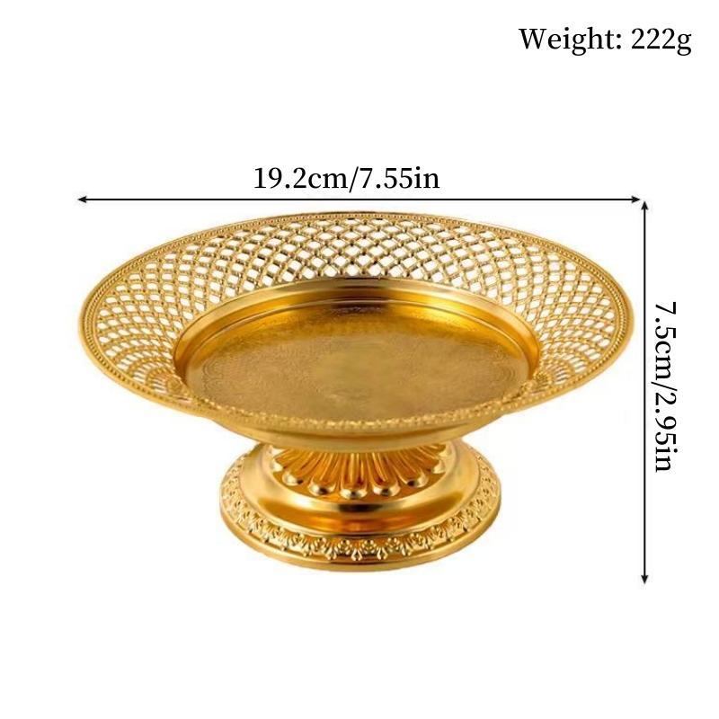 European Fruit Tray,Hollowed-Out Circle Shape Exquisite Golden Cake Plate,Snack Plate Butter Cheese Dish Wedding Decoration
