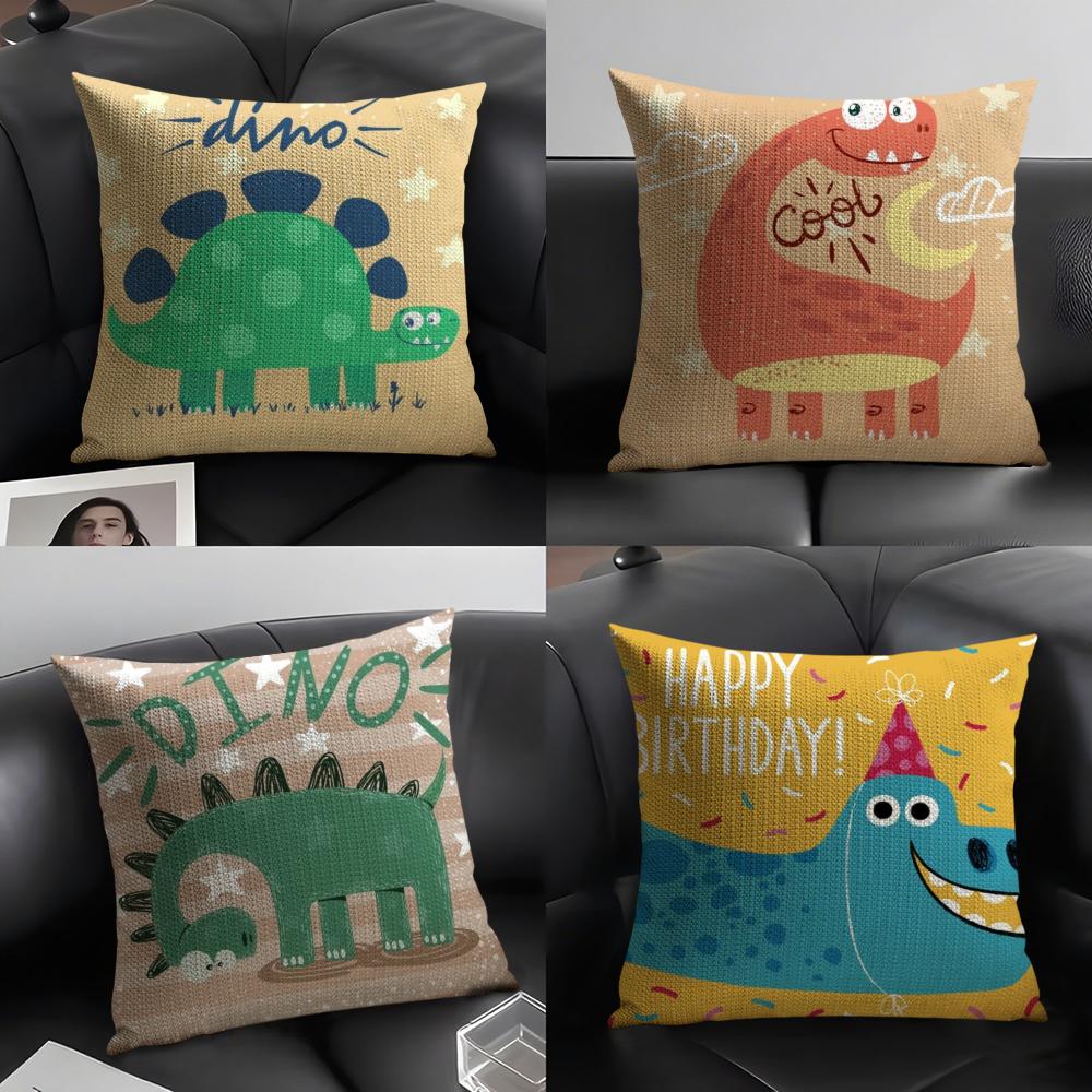 Cute Cartoon Dinosaur Cushion Cover Natural Linen Organic Fabric DoubleSided Printing Sofa Home Decor Gift Pillow Case