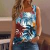 Women's Summer Casual Pleated Square Neck Sleeveless Tank Top Printed T-Shirt