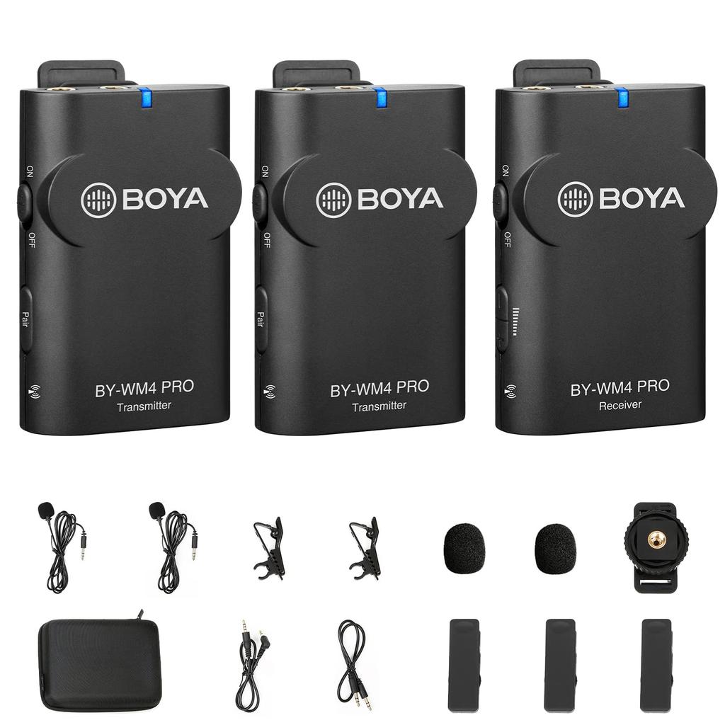 BOYA PRO K2 Wireless Microphone for Transmitters 1 BY-WM4 BY-WM4 TRS/TRRS Cameras/Smartphones (2 + Receiver)