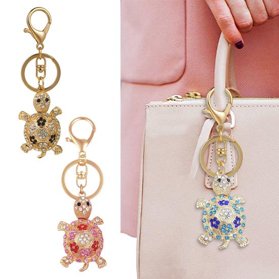 Keychain Sparkling Rhinestones Inlaid Turtle Design Keychain Pendant Enamel Oil Drip Process Spring Buckle Key Holder Car Key Bag Accessory