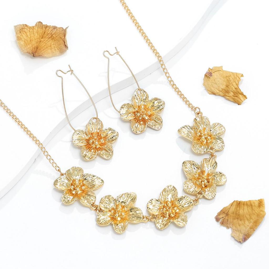 Elegant Retro Pleated Flower Pendant Collarbone Necklace