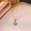 Elegant Zircon Flower Necklace & Earrings Set for Women - Titanium Steel & 18K Gold
