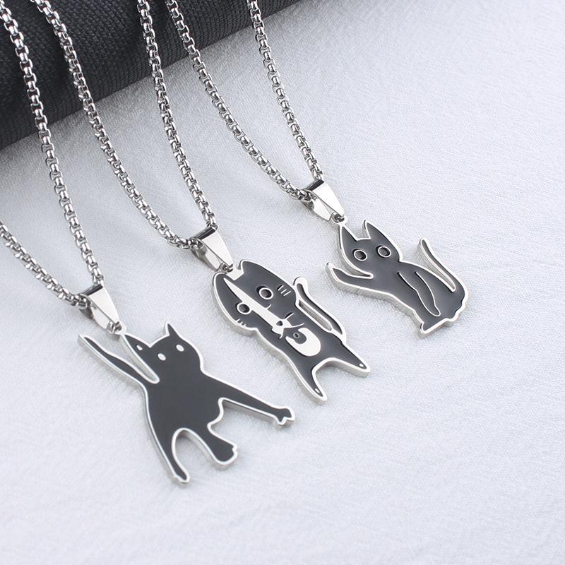 Cartoon Cat Pendant Necklace: European & American Cross Design, Stainless Steel Small Knife Charm, Men's Jewelry