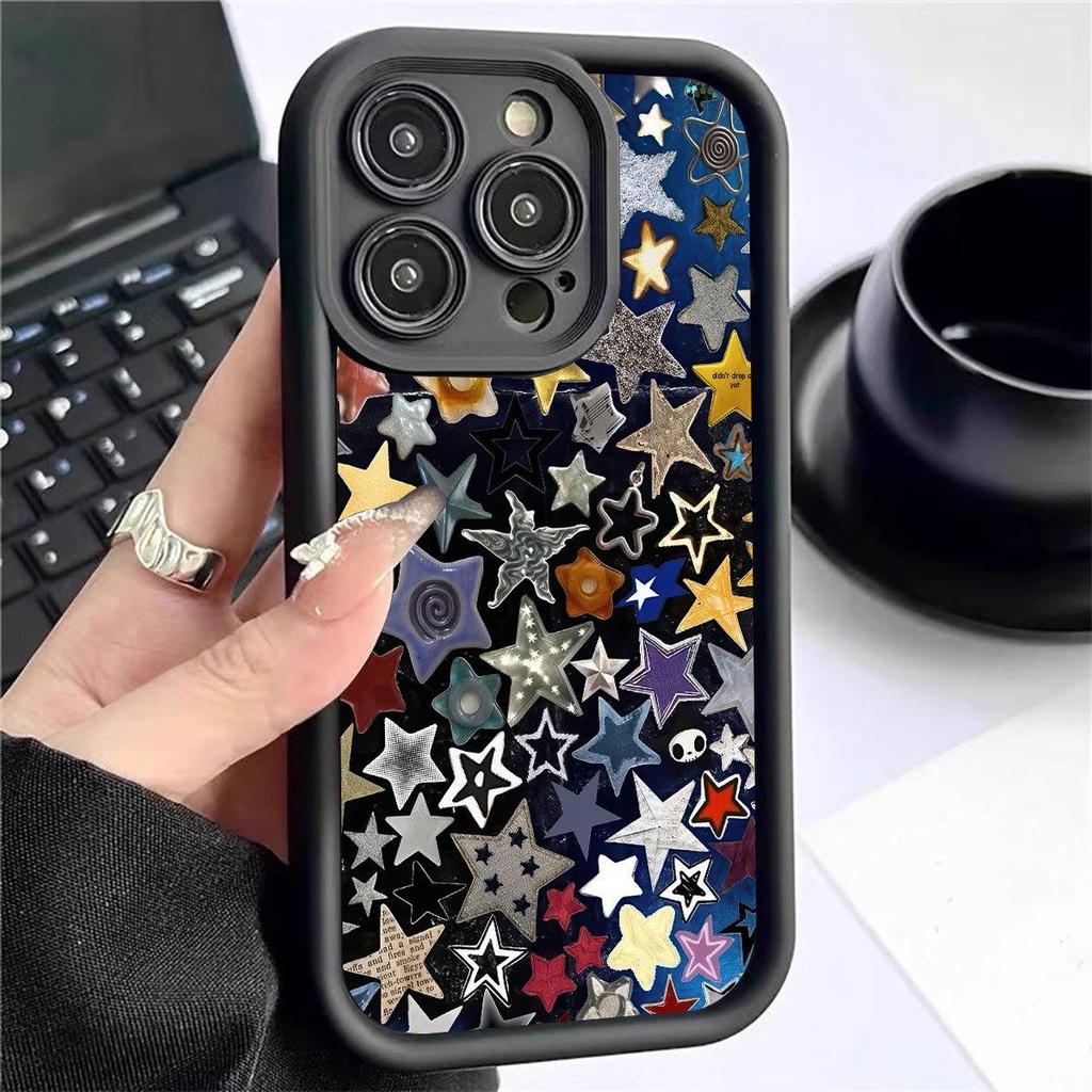 Five-Color Star Stairs iPhone 15/16/17 ProMax Protective Case (Black, New Groove)