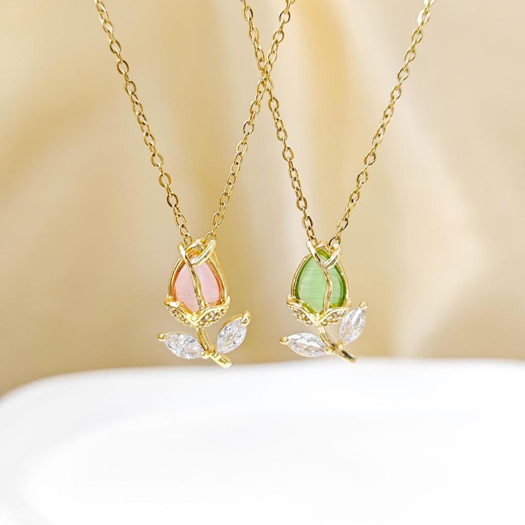 Elegant Cat's Eye Tulip Necklace - Luxurious, Versatile, Simple Korean Style Clavicle Jewelry for Women