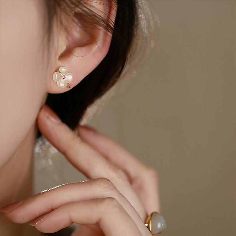 Exquisite Hetian Jade Four-Leaf Clover Stud Earrings: Fashionable, Versatile, and Unique Ear Jewelry