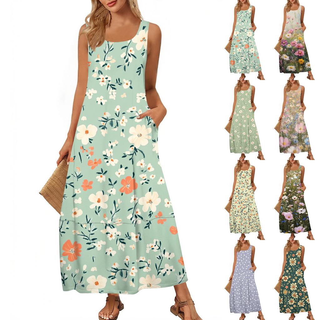 Women's Casual Floor-length Sundress Summer Beach Dress Round Neck Sleeveless Loose Print Sundress We can guarantee that the overall displayed in the photography is accurate, however there may be differences in how the appears during wear. This depends other physical variables, e.g. personal body size, body shape, limb proportion, height, etc. Description: MATERIAL: Our summer dresses feature a skin-friendly, soft, and elastic fabric that is breathable, does not shrink, and offers exceptional comfort, providing you with a delightful wearing experience. FEATURES: 1.Loose-Fit: Comfortable, easy to move in, different body types. 2.Two Pockets: Handy and trendy for a practical, relaxed . MATCHING: summer dress is a casual . Pair with and a denim jacket for a relaxed day, or to a and heels for work. Add jewelry and heels for nights out, or sandals and a crossbody bag for weekends. OCCASION: This dress is versatile for various occasions like everyday wear, casual outings, work, evening events, weekend gatherings, beach trips, vacations, and travel adventures. Gender:Women Material:Polyester Pattern Type:Print Decoration:None Silhouette:A-Line What you get:1 Dress Note: Due to possible physical differences between different monitors, the product photography is illustrative and may not precisely reflect the actual color of the item received