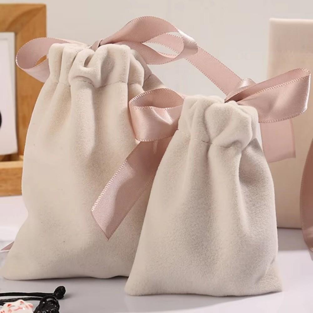 5pcs Thicken Jewelry Bags Small Bracelet Velvet Packaging Pouches Ribbon Bow Drawstring Gift Bag Jewelry Protect Storage Box