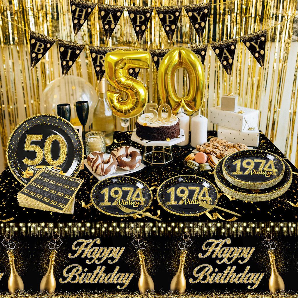 50th Black Gold Birthday Disposable Tableware Paper Plate Towels 50 Birthday Party Decoration 50th Birthday Birthday Anniversary