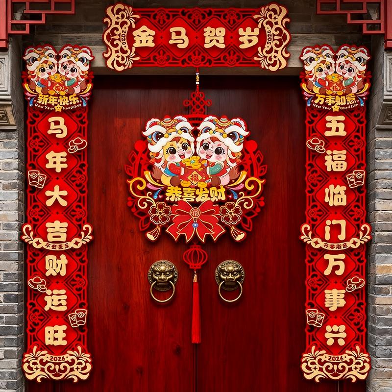 2026 New Year Of The Horse Couplets Spring Festival Door Decorations Couplets New Year Red Felt Chinese Knot Hanging Wall Decor