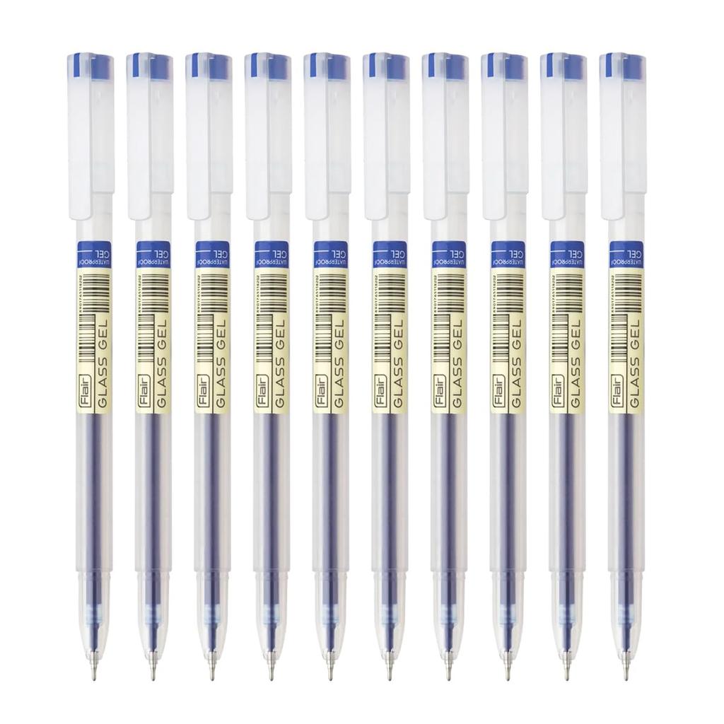 Flair Glass Gel Pen Pack of 20, 0.6 mm Blue Ink for Smooth Writing