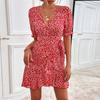 Women's Spring Summer Sexy V-Neck Floral Lace-Up Dress Casual Short Skirt