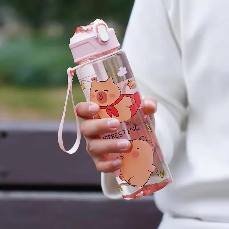 Cute Cartoon Capybara Water Bottle Leakproof Plastic Straw Cup Portable Outdoor Travel Large Capacity Sports Water Bottle