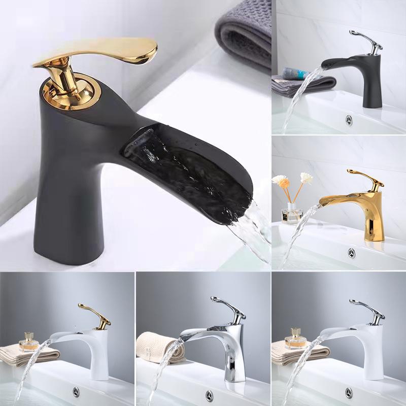 Bathroom Waterfall Basin Sink Faucets Hot Cold Tap Deck Mounted Water Mixer Crane Antique Bronze Chrome White Black Gold