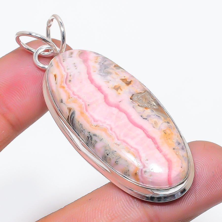 Natural Rhodochrosite Gemstone 925 Sterling Silver Jewelry Pendant 2.44" AP-14280