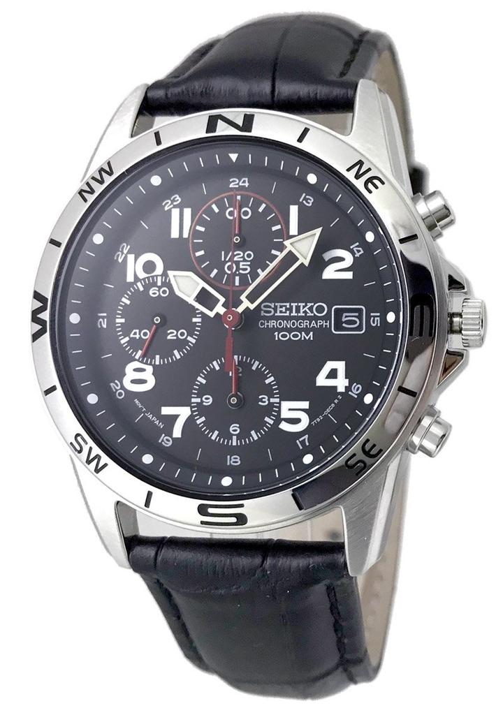 Seiko Chronograph Wristwatch Set SND375P-BK Genuine Leather Belt Black Military Authorized Product