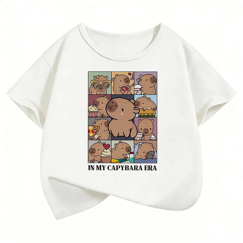Kawaii Shirt Capybara Graphic Kids Tshirts Summer Short Sleeve Tees Cartoon Animal Boys Girls Clothes Tops Y2K Children T-shirt