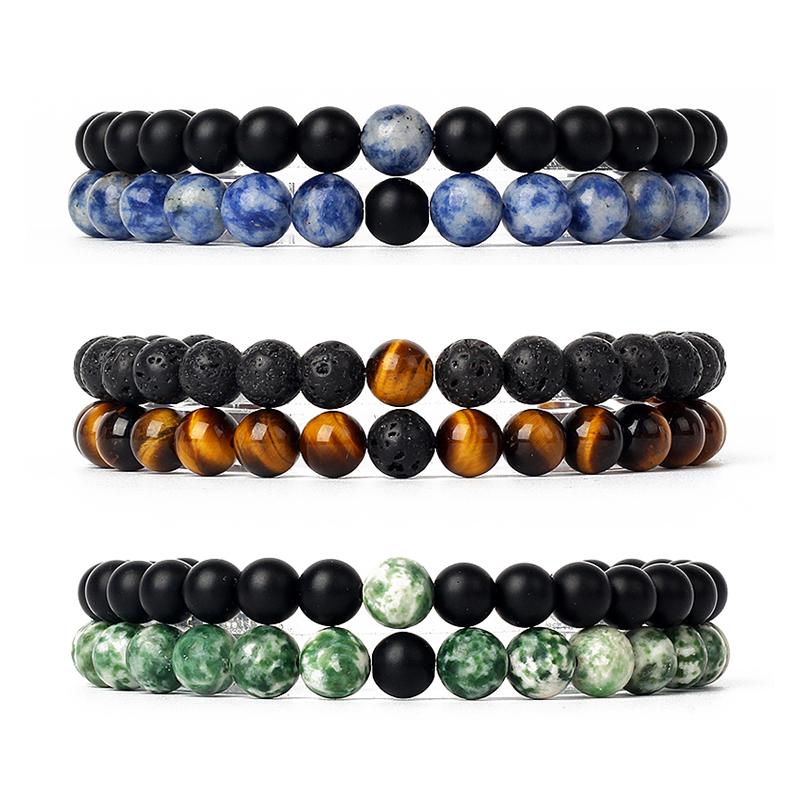 2pcs/Set Couples Distance Bracelets Tiger Eye Natural Chakra Lava Stone Beaded Yoga Bracelets for Men Women Elastic Rope Jewelry