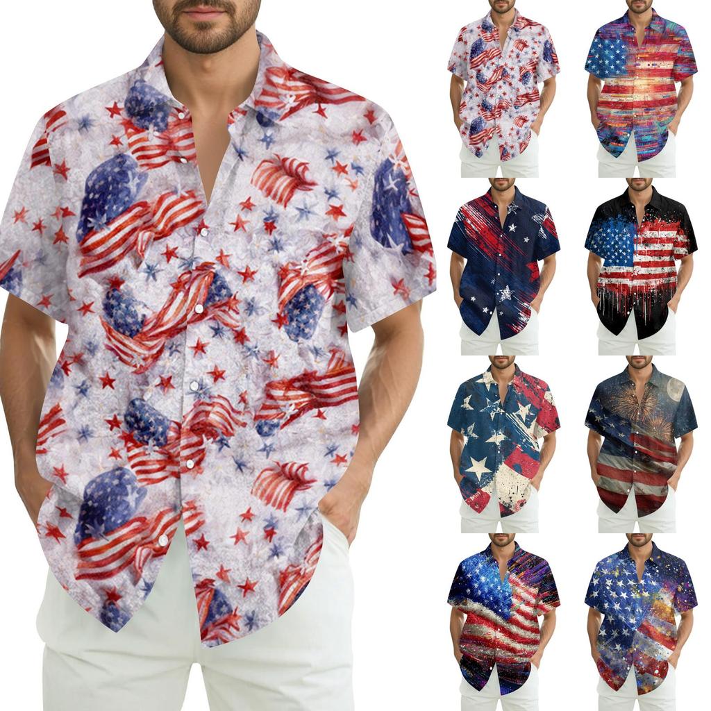 Men's Summer Casual Independence Day Print Short-Sleeve Shirt