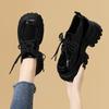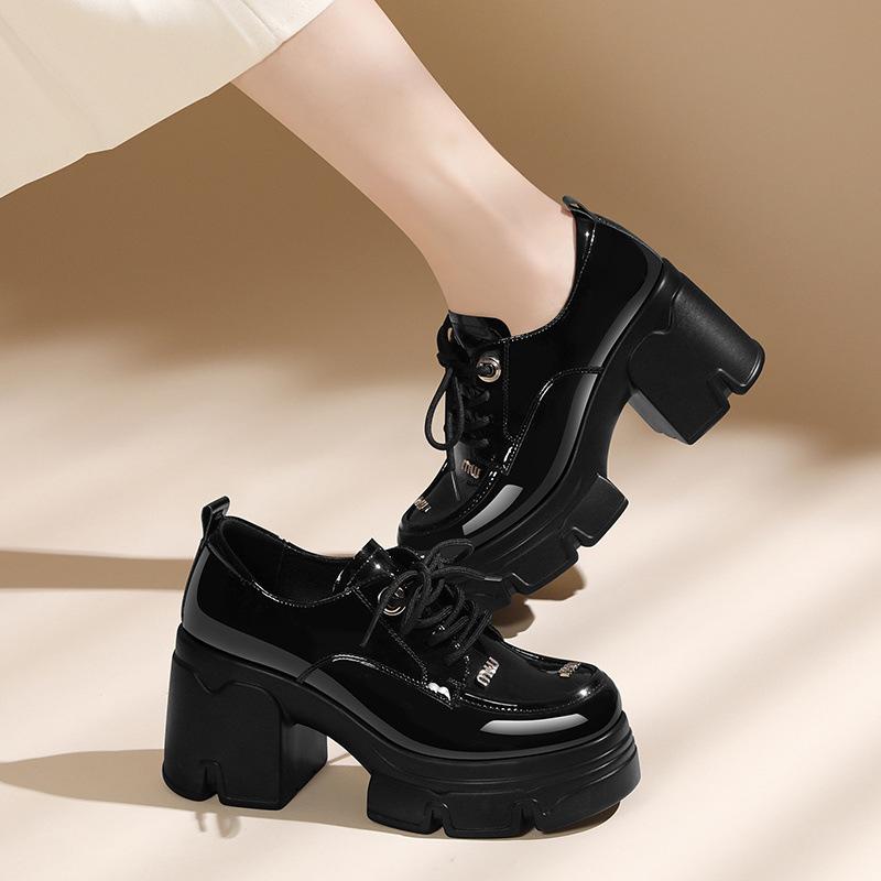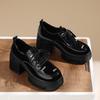 British Style Small Leather Shoes Korean Height-increasing Women's Black Patent Leather Thick-soled Thick-heeled Lace-up Loafers