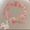 Bohemian Sweet Beaded Bracelet for Women Girls Pink Color Imitation Jade Crystal Hand Jewelry Birthday Party Gifts