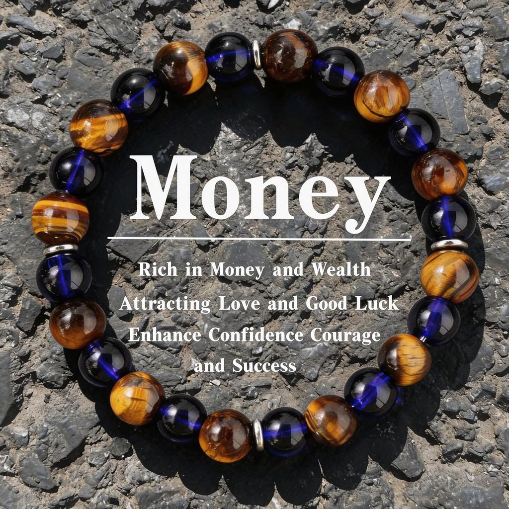 Festive Gifts Tiger Eye Dark Blue Glass Beaded Bracelet Natural Fashion Jewelry For Men Women Daily Wear Gift