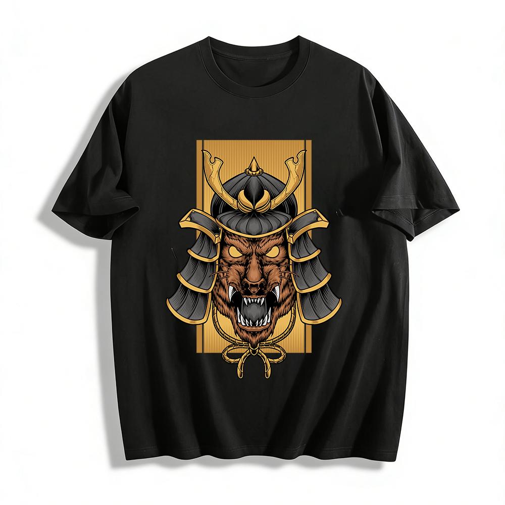 Samurai Tiger Japanese Retro Print Cool Casual Short Sleeve T-Shirt Pure Cotton T-shirt