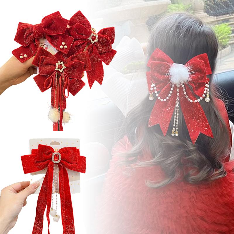 Chinese Style Hair Clip With Bow Red Crown Top Clip For Girl Antique Style Headwear Children's New Year Hair Accessories