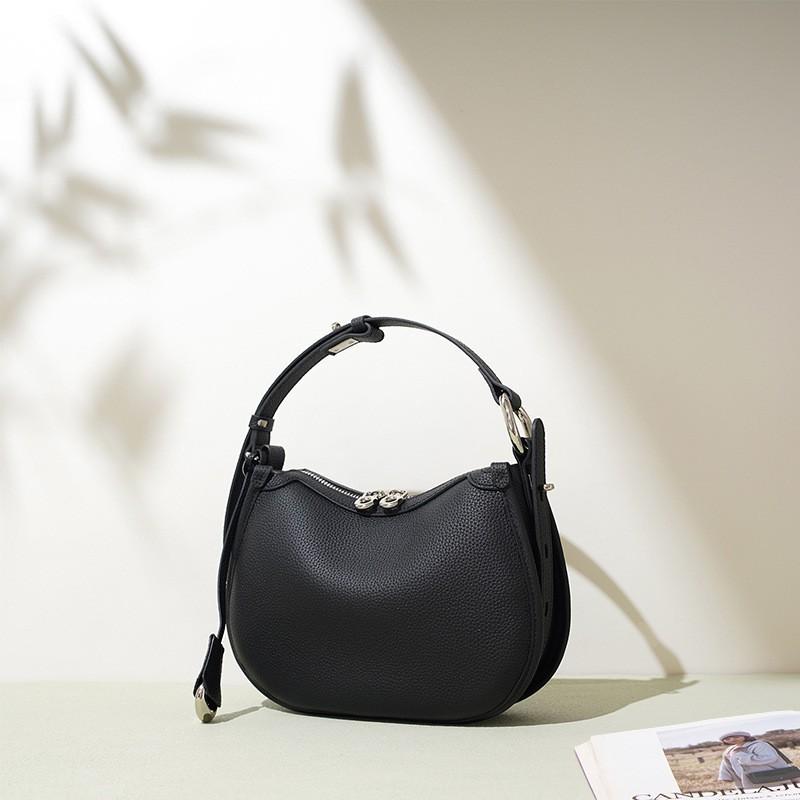 2026 Genuine Leather High-end Simple Hand-bag Cross-slung Saddle Bag Fashionable Niche Commuting Shoulder Women's