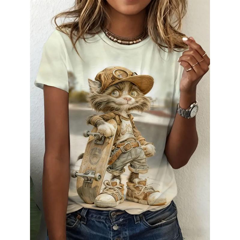 Fashion Women's Animal Short Sleeve 3D Animal Color Printing Crew Neck T-Shirt Crew Neck Short Sleeve
