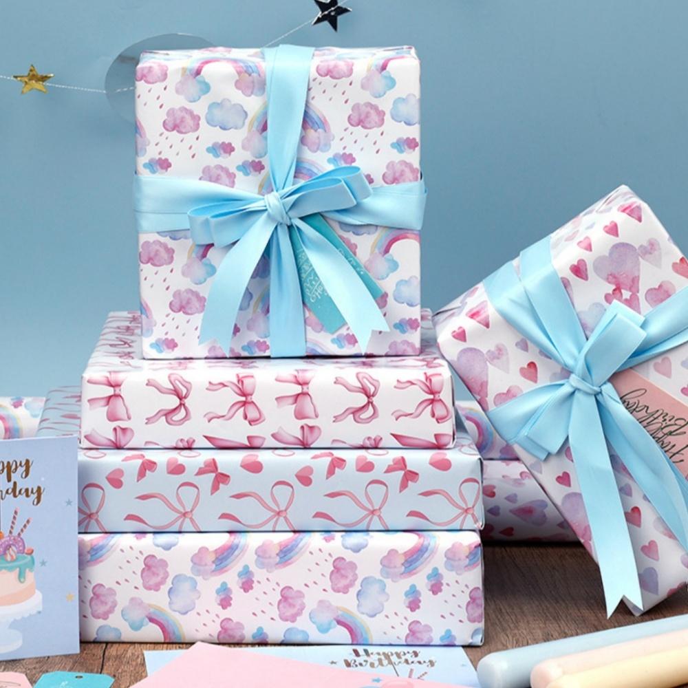 Pink Bow Pattern Paper Rainbow Watercolor Birthday Gift Wrap Diy Craft Paper Charming Christmas Gift Packaging For Christmas Diy